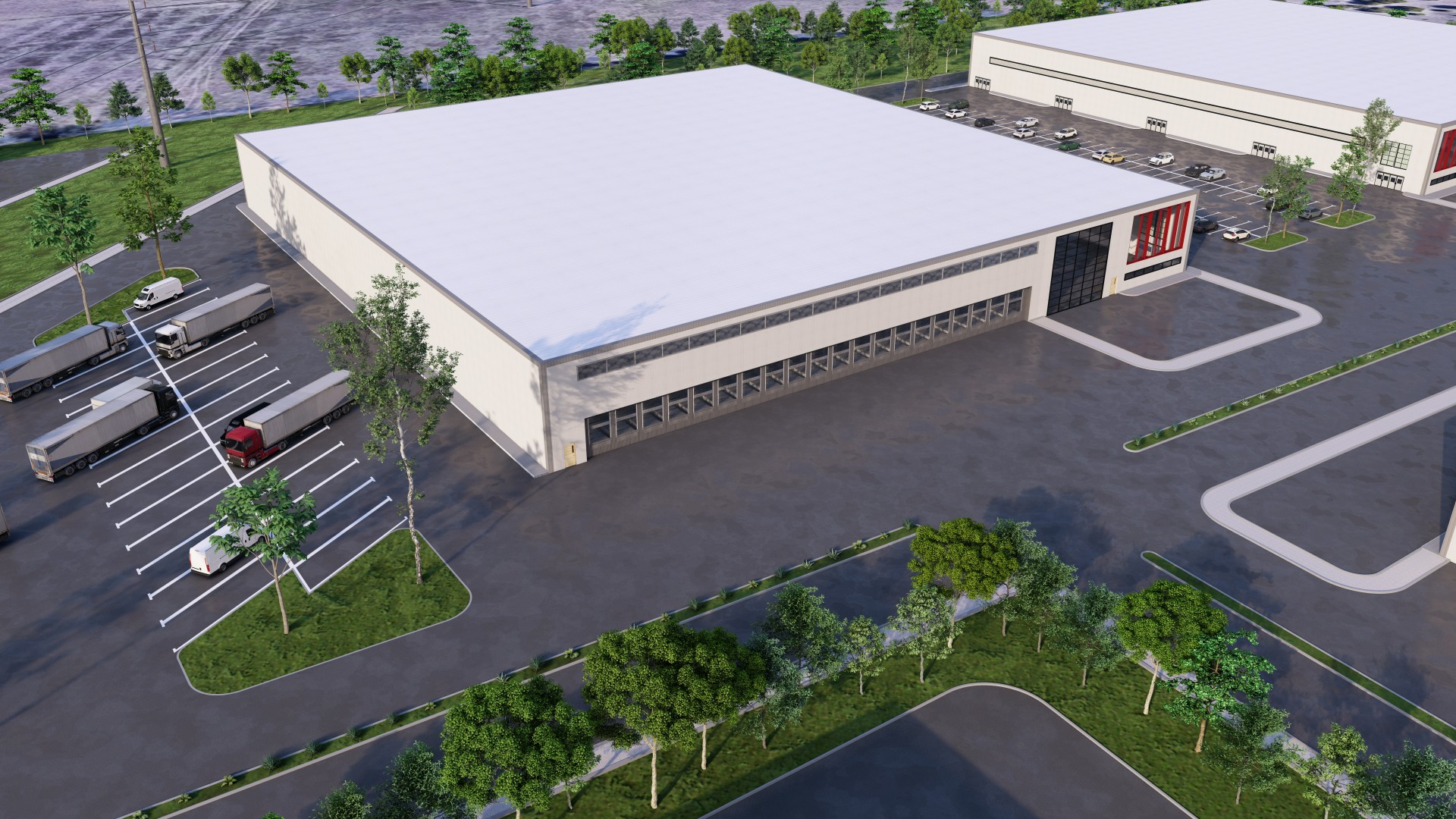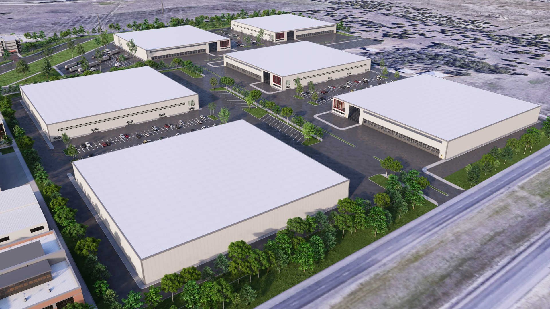 Site-ready configurations for build-to-suit or spec industrial facilities